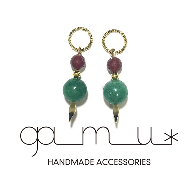 たくさんのお店の中からご覧いただきありがとうございます 作家本人が直接目で見て出逢い心動かされた天然石を使った世界にひとつだけのアクセサリーです☆ .:*゚..:。 細かいカットが施されたヘソナイトガーネットに鮮やかな緑が美しいアベンチュリンの組み合わせ(*´艸`*) 夏のリゾートファッションにもおすすめ◎ こちらはピアスかイヤリングかの金具が選べます:) 【金具交換について】 4枚目画像の中からお好きな金具を必ずお選び下さい。 【サイズ】 2枚目の写真を参考にしてください。(モデルの耳サイズ:6.5cm×3cm) 【ご購入前の注意】 ◇gamu*で使用している天然石パーツは石屋から買い付けた一点物なので大きさや色味、若干のゆがみなど個体差があります。 ◇検品はしていますがパーツや金具にクスミや小傷が元々ある場合もございます。 ◇ひとつひとつ丁寧に作っていますがハンドメイドになりますので既製品に比べて壊れやすいこともありますのでご了承ください。 ◇メッキの金具やレジンを利用しているアクセサリーもございますのでアレルギーがある方はご遠慮くださいませ。 ◇ディスプレイやモニターの環境により、写真と実物の色味が若干異なる場合がございます。 ◇お客様のご都合による返品交換は受け付けておりません。 ◇気になる点がございましたら、ご注文前にお気軽にご質問ください。 【返品・キャンセルについて】 ◇ 丁寧に梱包しておりますが商品をお受け取り後、すぐに不備がないかをご確認いただくようお願いいたします。 万が一作品に破損・数量不足・梱包不良などがございましたら、お届けより3日以内にcontactよりご連絡くださいませ。 ◇ 試着・ご使用後の返品も含め、サイズが合わない・イメージと違う等の返品・クレームはお断りさせて頂いております。 サイズなどをよくお確かめの上ご購入くださいませ。