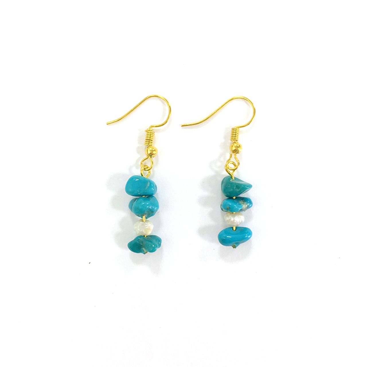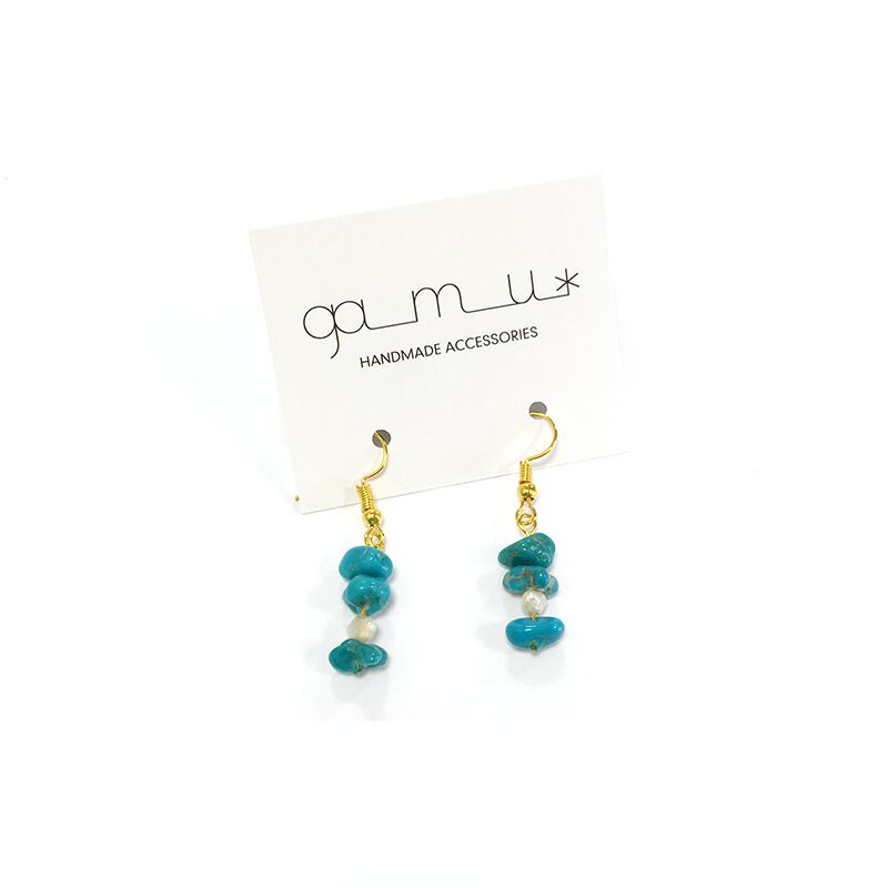 トルコ石(ターコイズ)と天然パールのシンプルで品のあるフックピアスができました。