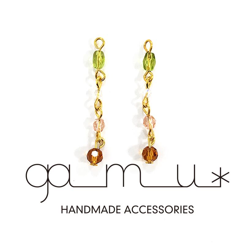 ◇gamu*で使用している天然石パーツは石屋から買い付けた一点物なので大きさや色味、若干のゆがみなど個体差があります。